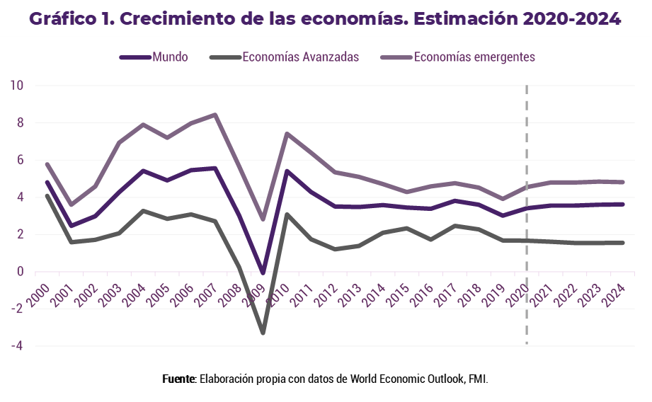 fue de 4.1% anual. En los diez años posteriores, el promedio de crecimiento ha sido de 3.7%, según datos del Banco Mundial, y las previsiones para 2020 rondan el 3.5%, que se mantiene entre 2020-2024.