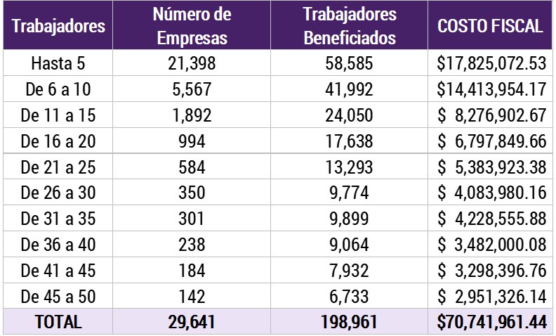 Esta medida podría beneficiar a de cerca de 200 mil trabajadores y trabajadoras y alivia la presión financiera de alrededor de 30 mil MIPES. El costo fiscal de esta medida sería de $70.7 millones.