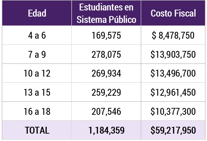 6 – Transferencia directa de $50 a hogares por cada estudiante matriculado en Centro Educativo Público